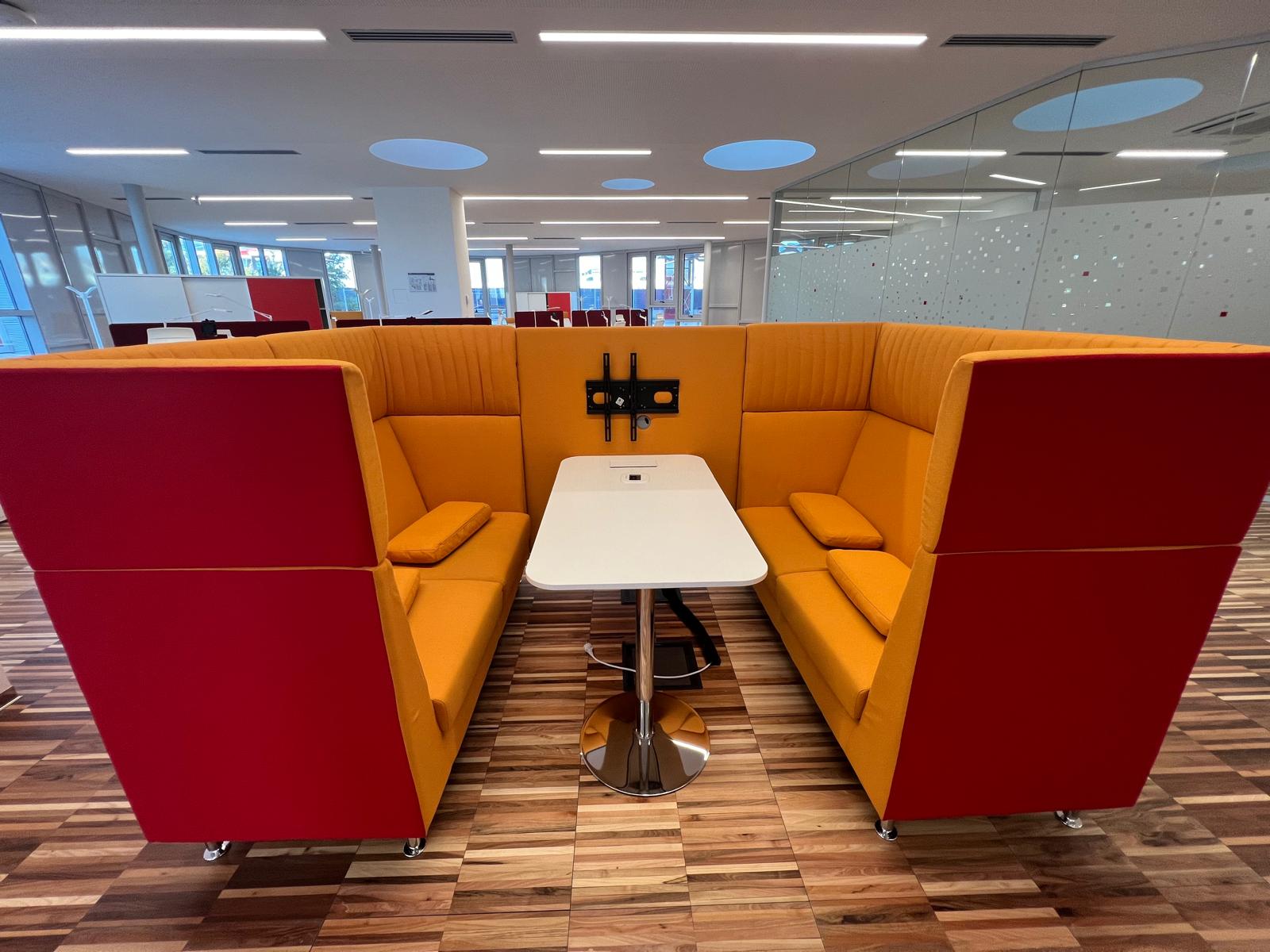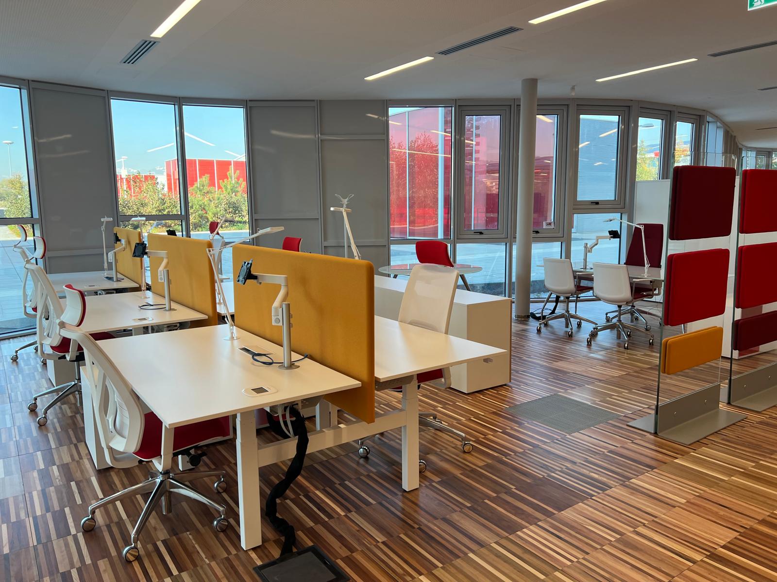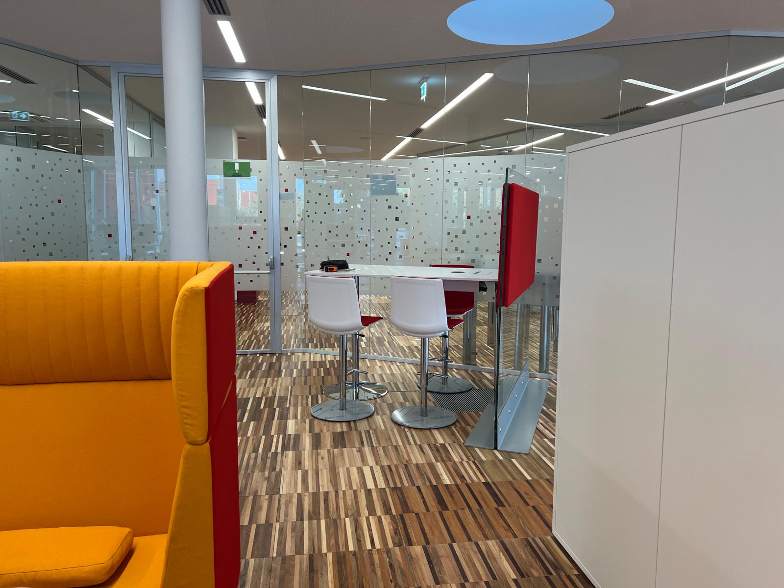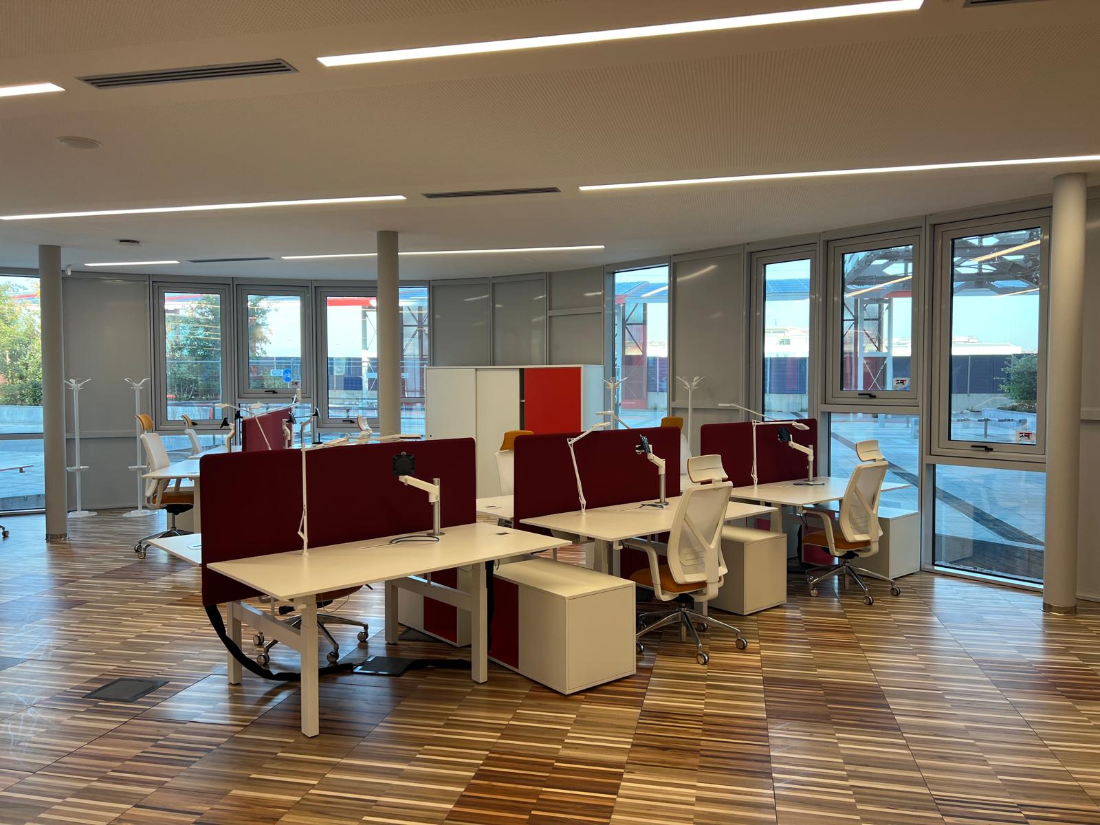 Arredi, fornitura completa dei 42 piani: Pareti vetrate mod. IWS By Fantoni, Scrivanie serie Framework, Mini acoustic room, sedute by AresLine