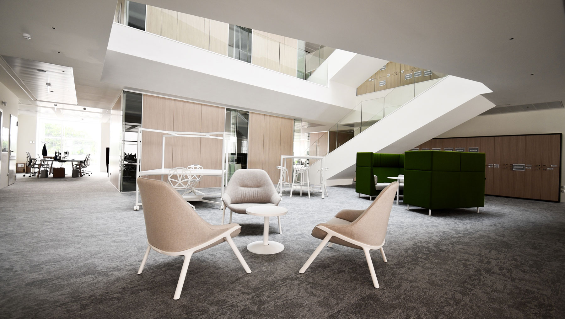 Arredi: Hub by Fantoni / Woods by Fantoni / Mirra2 by Herman Miller / Setu by Herman Miller